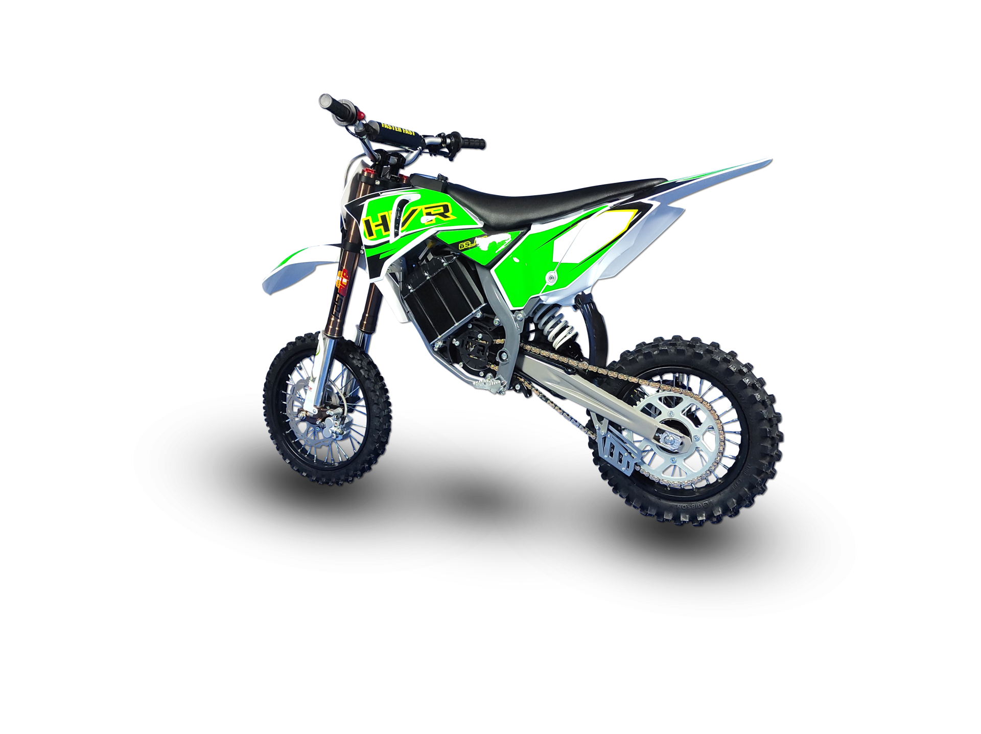 Die HVR 65 PRO ist eine Elektro Motocross für Kinder bis 13 Jahre. Die Geschwindigkeit und Leistung sind über eine Handy App individuell einstellbar, daher eignet sich die HVR 65 PRO sowohl für Anfänger als auch für Fortgeschrittene. Die Sitzhöhe lässt sich von 760mm bis 830mm individuell einstellen und die Lenkerhöhe beträgt ca.1000mm. Bei diesem Modell ist Vorderbremse am Lenker- und die Hinterradbremse als Fuß Pedal montiert(siehe Bilder).